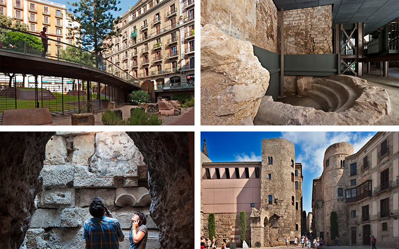 Al Museu d’Història de Barcelona de la Plaça del Rei hi trobem una de les restes romanes més ben conservades i amb més m2 d’Europa. Pertanyen a la Barcino romana del segle I a.C, entre d’altres èpoques, i hi trobem restes de la muralla, antigues cases o domus, una bugaderia i una sala de fabricació de vins, construccions que ens mostren com vivien els romans de l’antiga Barcelona. L’entrada és de pagament.