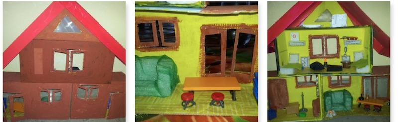 Prenem nota dels materials? El principal són caixes de cartó grans i el segon molts molts colors!