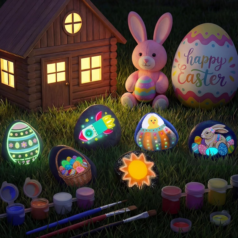 Aquest kit porta tot el que necessites per decorar pedres d’una manera molt divertida. Hi trobaràs: pedres, pintures de molts colors (algunes brillen a la foscor!), purpurina, pinzells, ulls mòbils, adhesius, esponges i pedretes de colors per enganxar.