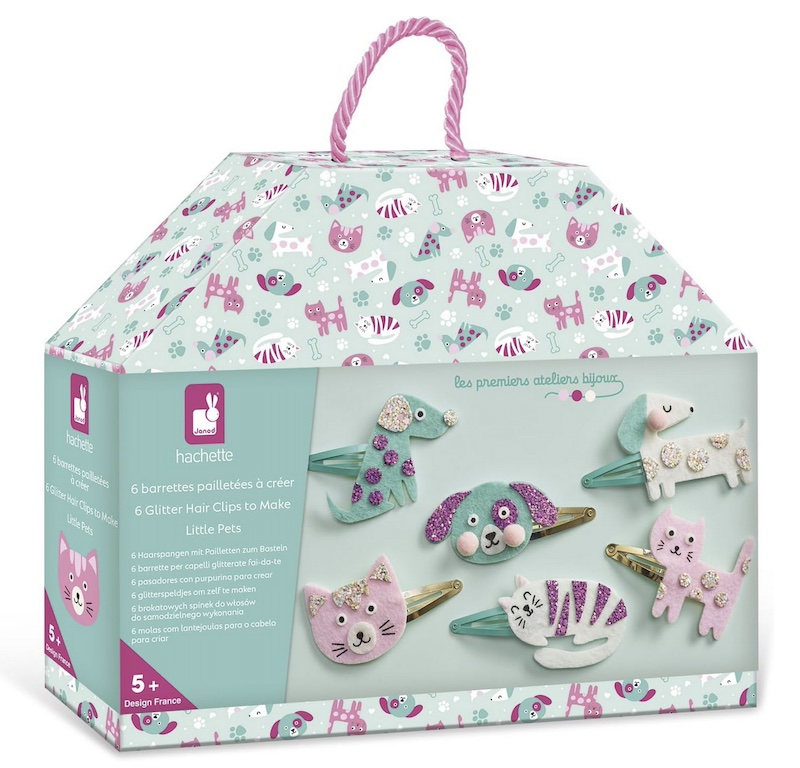 Aquest kit permet als infants crear 6 pinces per al cabell amb formes d’animals i detalls divertits. És una activitat senzilla i creativa que ajuda a desenvolupar la motricitat fina, la creativitat i la concentració.