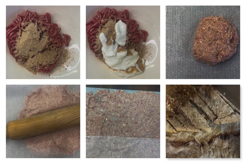 Cuando lo saquemos del horno, la carne estará cocida, fina y un poco crujiente: ideal para cortar en tiras como el shawarma. - Salsa de yogur casera.