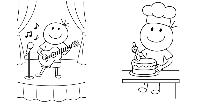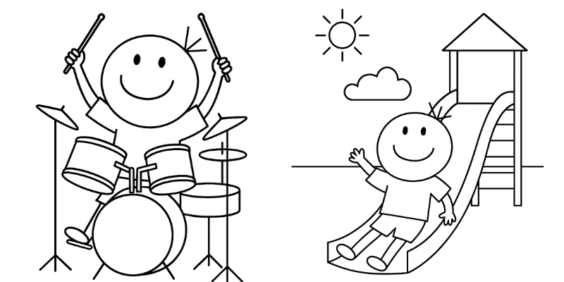 Són il·lustracions molt fàcils de pintar. Els infants poden donar vida al logo de Sortir amb nens amb els seus colors preferits, mentre desenvolupen la motricitat fina i la imaginació.