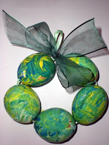 Decoreu amb cintes de colors i llaços els ous. Els podreu regalar als padrins en agraïment a la mona, decorar la casa o posar-los per guarnir la taula.