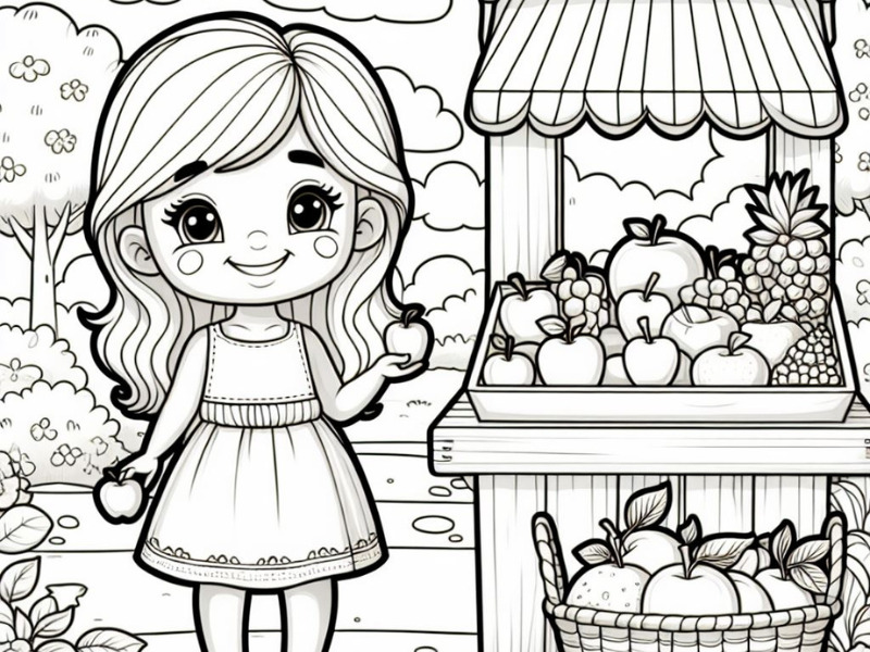 Una col·lecció especial de dibuixos per acolorir que inclouen tota mena de fruites: pomes, plàtans, taronges, maduixes i moltes més.