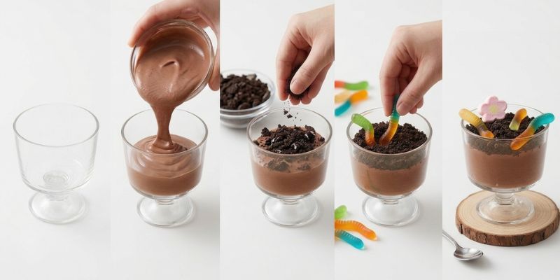 Afegeix llaminadures en forma de cuc. Clava-les una mica dins la galeta perquè sembli que surten de la terra. És la part que més diverteix als nens!