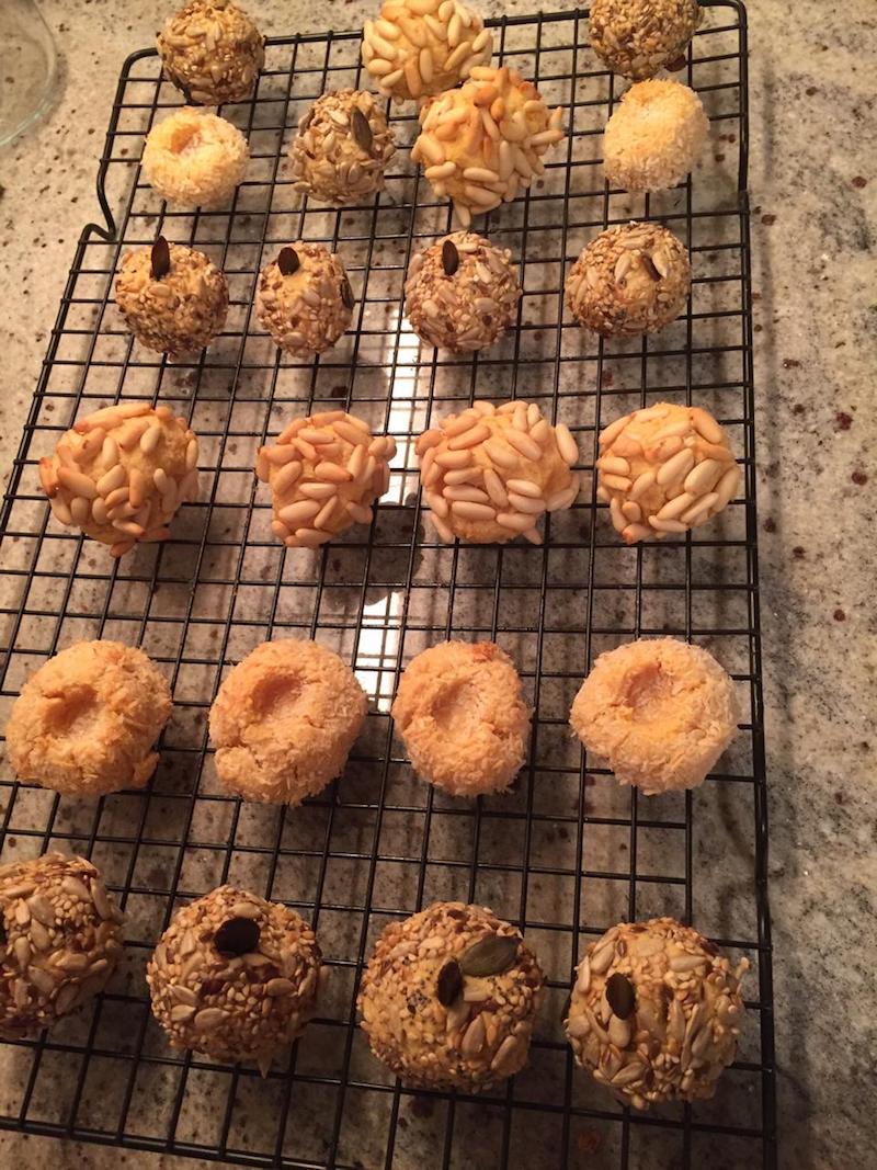 ➡ Panellets de llavors. Barrejar i arrebossar amb pipes i sèsam.